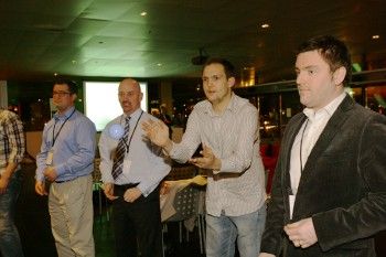 Following the talks, which included mine, an introduction to Agile Development from Andrew Rumfitt (Perfect Image), and a discussion of the application of Agile techniques to non software projects by Colin Ashurst (Durham Business School), everyone played the "Ball Point Game". This is a simple training exercise where small teams are formed, the goal being to pass as many balls between the team members as possible in two minutes. However, the added twist is that before each 2 minutes "iteration" the team has to estimate how many balls they will pass. Interestingly, most teams got better with each iteration, passing more balls, but more importantly as they found their natural velocity, their estimates improved.
