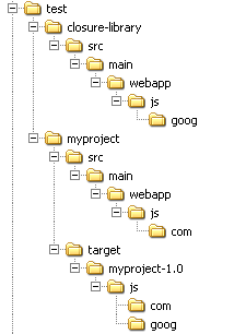 As you can see, the target directory in myproject has combined the js folders from both projects, so giving the Compiler access to the js folder will include all JavaScript source.