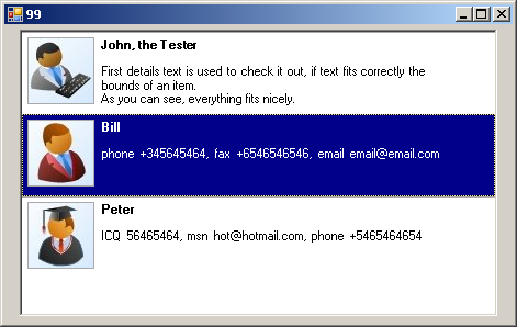 With WPF the listbox uses a template to render the data within the list. Here is the same list rendered with a WPF application: