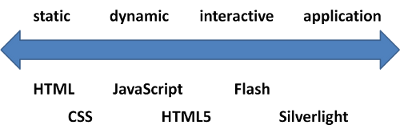 With the above sliding scale we can position the popular internet technologies based on their relative strengths and the types of site they are most suited to: