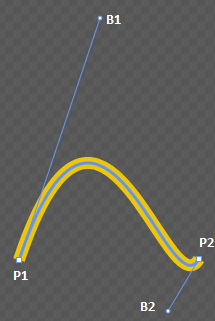 is currently composed of a number of straight line segments, in order to create a smoothed line we need to use curved segments. Silverlight and WPF both support Bézier curves and these can be used to specify a curved path geometry. A Bézier curve has four points, a start point, an end point and two control points which define the curvature: