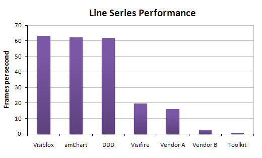 A few days ago Alan Mendelevich plugged the amChart Quick Chart into the test harness to see how the performance compared. Alan's findings were that the Quick Charts were marginally faster that Visiblox (and that you should not compare apples and oranges).