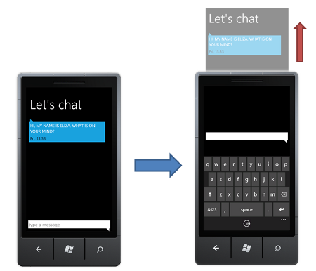 A couple of weeks ago I wrote a blog post which described the creation of a Windows Phone 7 ConversationView, a view which renders a list of messages so that they look like a conversation. In this blog post I am going to extend the concept further, by adding an input text field allowing you to have a conversation with ELIZA, an A.I. chatterbot. This blog post will look at some of the tricky issue regarding scrolling the list of messages so that the most recent is always visible when responding.