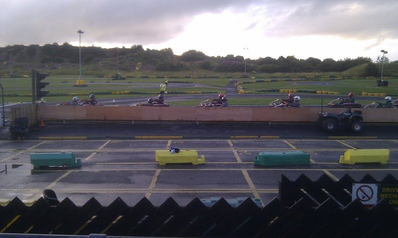 The race started with a 15 minute practise session on a soaking wet track. The first few laps were a bit hairy with karts spinning out all over the track as the slippery tarmac quickly earned the driver's respect. Everyone then got down to business putting in some fast laps, resulting in the following 1, 2, 3 on the start line -