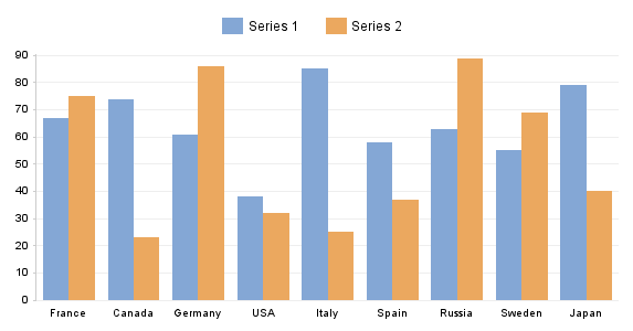 Occlusion, in data visualisation, refers to the phenomenon where a part of the visualisation obscures another part. Clearly this should be avoided, or at least minimised, since hidden visuals prevents you from interpreting the information correctly. Unfortunately, the design of radar charts means significant occlusion is inevitable when multiple series are plotted, since they must be "on top" of each other. In cases where the fill colour of the shape of a series is relatively or completely opaque, such as Chart 5, it can be nigh on impossible to see particular values. In these cases, the gridlines are also at best partially obscured, thereby making it even more cumbersome to discern the value any any given point. In Chart 5 this is has been somewhat overcome by adding tick marks on top of the series, which, unfortunately, also adds to the overall clutter on the chart.