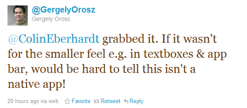 I am happy to see that my first attempt at a HTML5-based WP7 application was accepted by the Windows Marketplace. I am sure that HTML5 will play a significant part in the future of mobile application development and it is re-assuring that Windows Phone 7 can be a part of it.