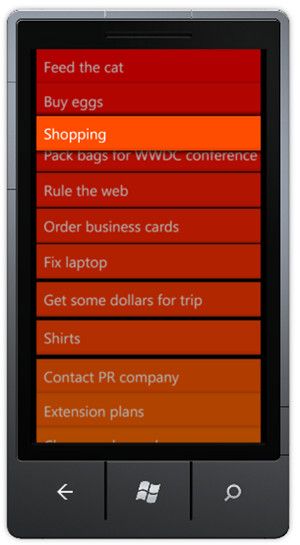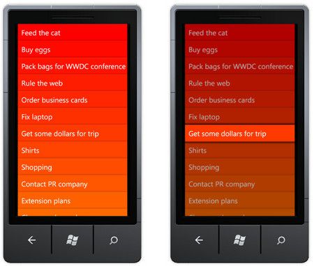 As mentioned previously, this application is heavily inspired by the iPhone application Clear, who I give full credit for coming up with such an innovative user-interface design. This blog post is for fun an education, you are strictly prohibited from using this as the basis of a 'Clear' clone for WP7.