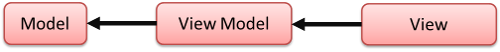 With the MVVM pattern the direction of 'visibility' is as follows: