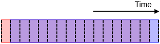 Here we’re looking at a sliding window in its old state (red) and new state (blue), with the Spark iterations marked by the dashed lines. As each iteration passes by, the purple area is staying the same, so all Spark needs to do is undo the reduction of the red section that has fallen off the end, and add on the reduction of the new blue section.