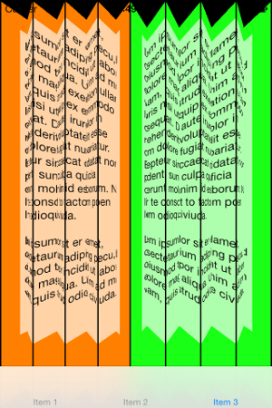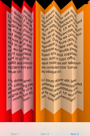 If you watched the WWDC video #218 “Custom Transitions Using View Controllers” you will have seen a demonstration that showed a tabbed interface where you can swipe left and right to navigate, with the view controllers folding like paper: