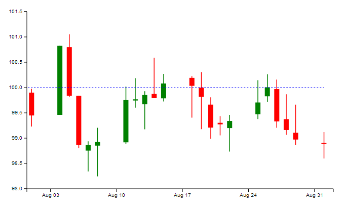 I’m not proposing to cover what D3 is in this post; Tom’s done that admirably in his article on OHLC and candlestick components, and in fact I’m going to be lazy and build on the chart he developed there.