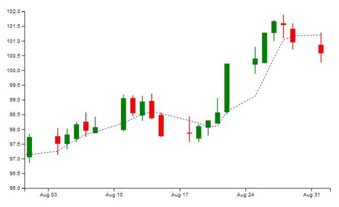This new component I’m going to create will be able to show a horizontal line at a fixed Y-value, as before, but it’ll also be able to follow any of the data fields in the model (open, high, low, close) with an optional moving average calculation thrown in for good measure.