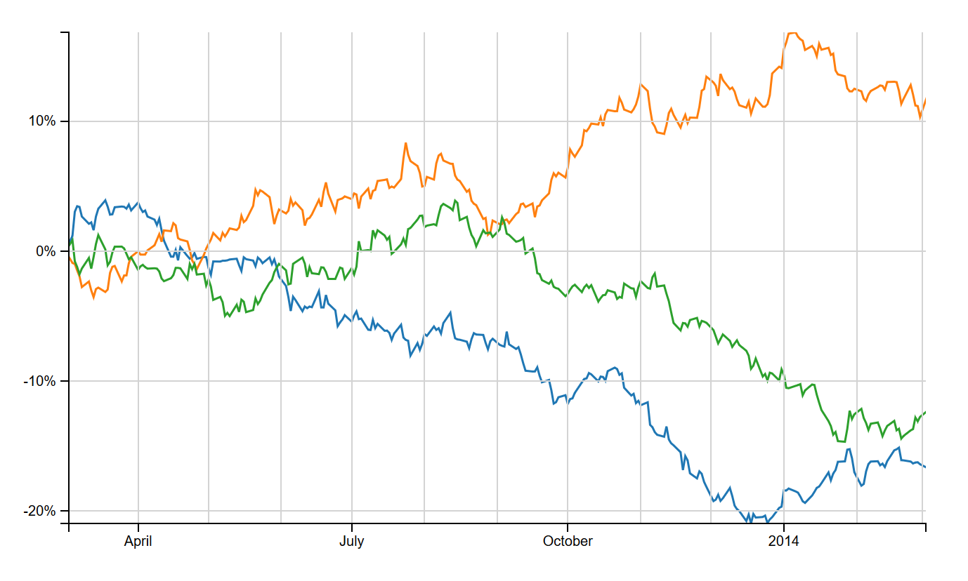 Comparison charts, as their name suggests, are great for comparing the percentage price change of multiple stocks in time. In this post, we’ll make one using D3.