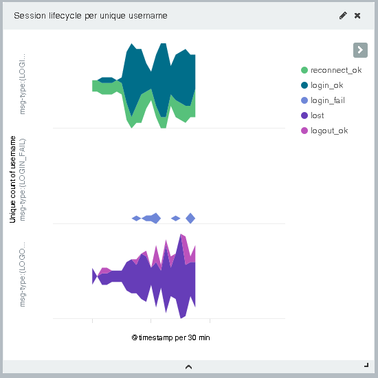 Simple examples of this were unique session counts over time, live concurrent session lifecycle overviews and even breakdowns of the session load by service. A particularly valuable example was a real-time conversion rate of FX quotes, showing not only how many quotes were being requested over time but the ratio of those which were eventually traded.