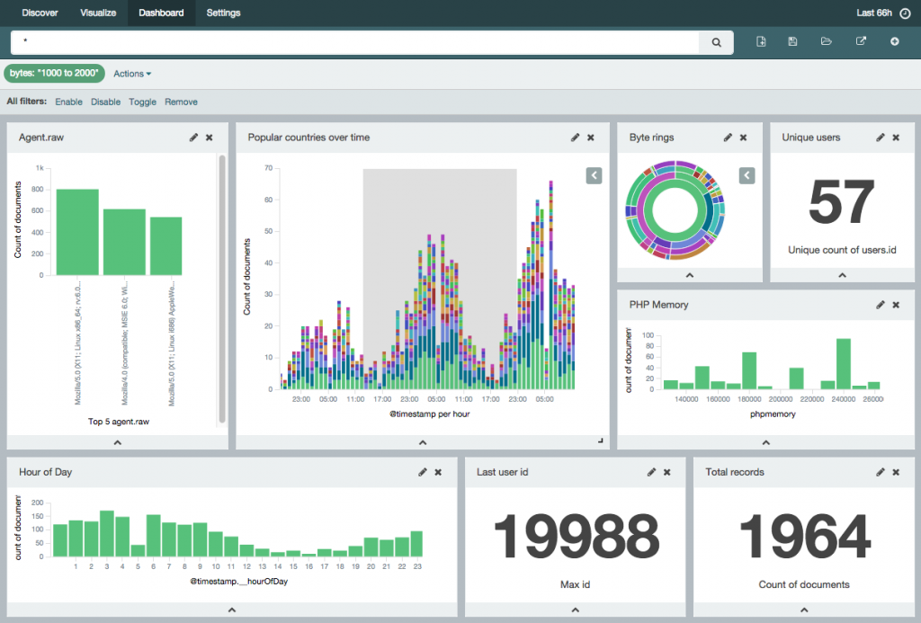 Kibana - A browser-based interface served up from a web server. It’s job is to allow you to build tabular and graphical visualisations of the log data based on elasticsearch queries. Typically these are based on simple text queries, time-ranges or even far more complex aggregations.