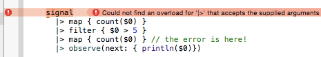 Fortunately ReactiveCocoa has a solution for this problem via the funky looking pipe-forward operator |>