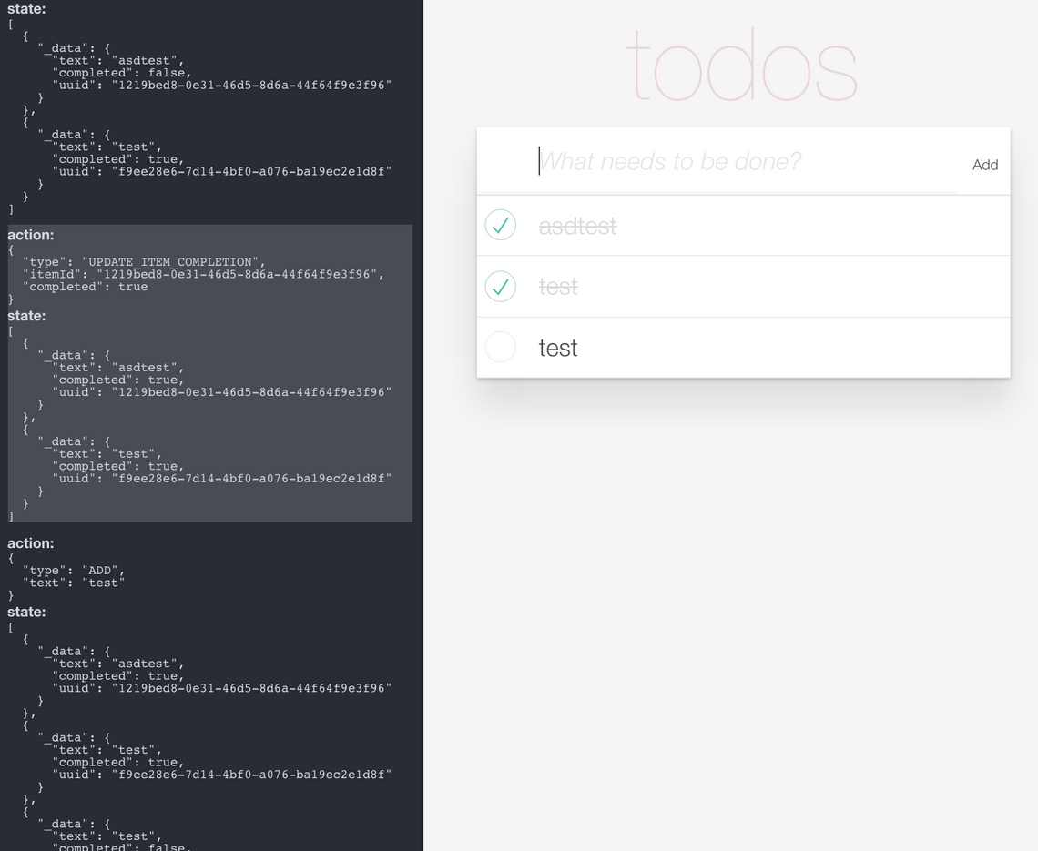 With this simple update the app now supports time travel, you can click on any action to roll-back to the previous state.
