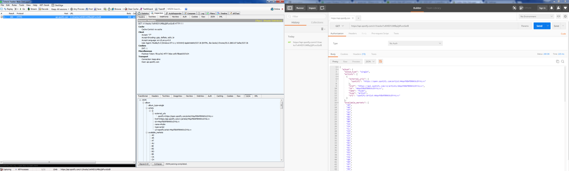 as the track ID, I can use Postman to fire off a GET request to https://api.spotify.com/v1/tracks/1xKHE01UMBq2j6FurzGoIB