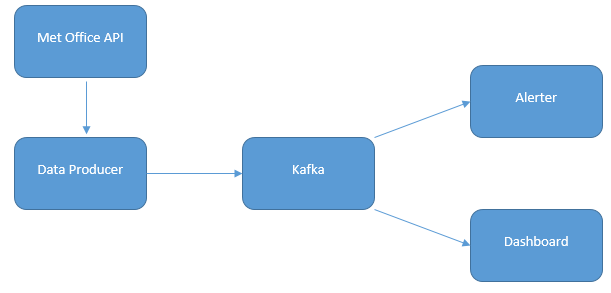 This post has shown how to get going with Kafka very easily and show live graphs of the data. The code for the alerter component shown in the diagram at the top is not shown, but is easy to implement based on the structure used in the Graphite consumer. I implemented it by keeping a moving average of temperature in memory and triggering an alert if it the average was below zero for a certain amount of time.