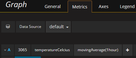 Before creating graphs, a data source needs to be added to Grafana. It supports a few different options, and Graphite is among those with the best support. The data source URL should be “http://graphite:80” and proxy access should be chosen, as going direct won’t work if the docker containers are running in a virtual machine. The default username and password for the Graphite container are both just “guest”. Once this is working, creating a dashboard to display the data is a matter of minutes. For example the configuration of the temperature graph looks like below: