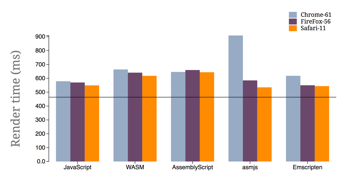 So what should the performance of WebAssembly look like? considering that JavaScript is only marginally slower than native code, there isn’t a huge gap to close. The more reliable source is a joint paper from Mozilla, Apple, Microsoft and Google: