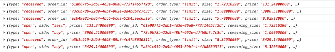 method. Each time this is invoked, the views are updated and the visualisations re-render. With the coinbase feed you typically receive hundreds of updated a second, which requires some throttling.