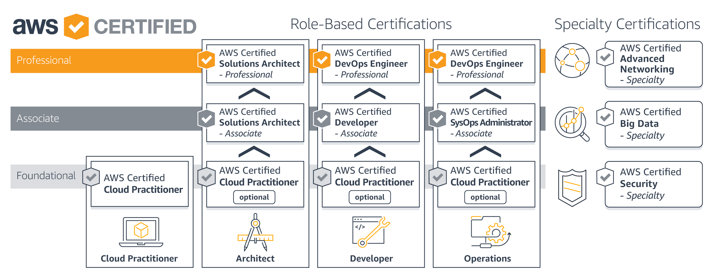 As you can see, there are multiple certifications that you can take. Choosing the right one, may not be immediately obvious. We have decided to study for AWS Solution Architect Associate as it is meant to test your general understanding of designing cloud solutions that will work on AWS.