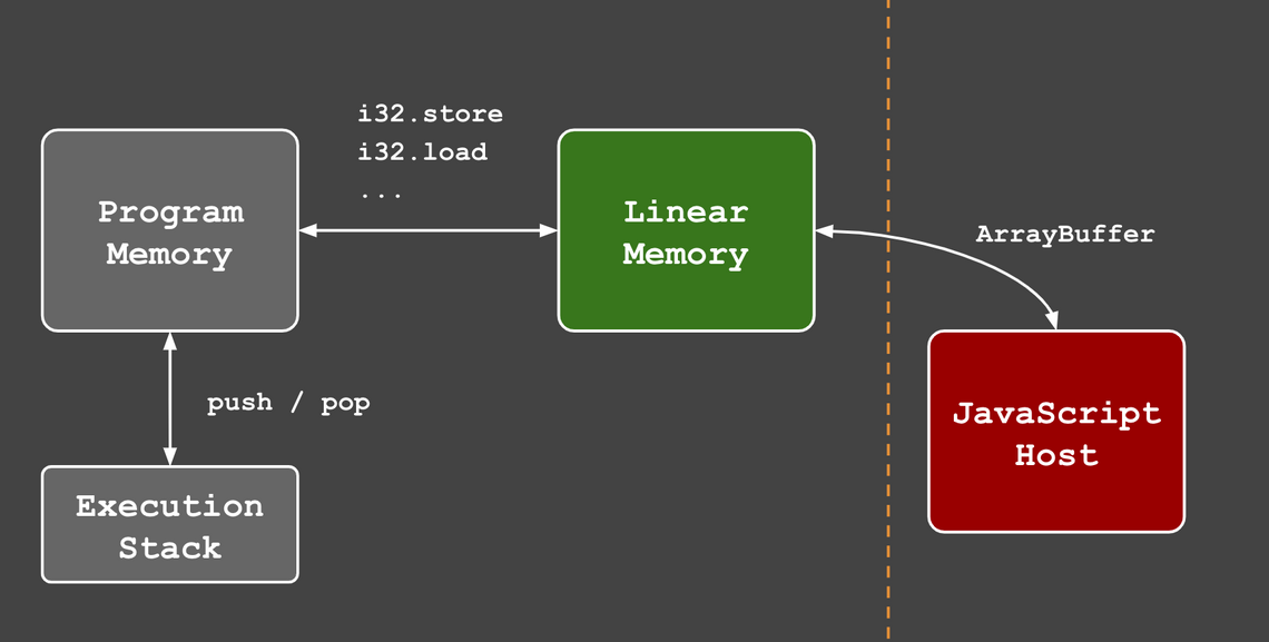 To achieve this we’ll make use of another very important component of WebAssembly modules, linear memory: