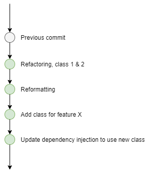Now imagine a scenario where two (or more) of you are working on a feature. You may both want or need some refactoring changes. If you make these in a discrete commit, you can all use the changes without the noise of each person’s individual activities. You unblock others, whilst also making merging easier in the future.