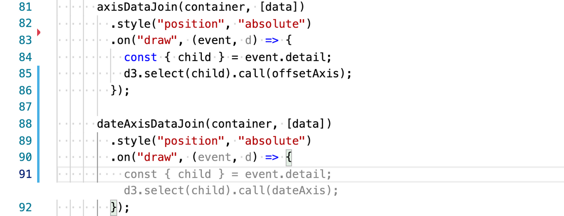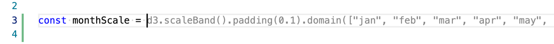 D3 code is somewhat idiosyncratic, adopting a style which is quite different from vanilla JavaScript, so presents an interesting challenge for Copilot.