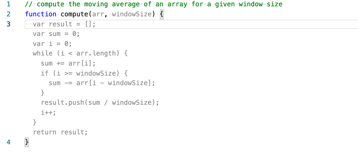 It’s quite common to set coding challenges as part of a job interview. At Scott Logic, one of our standard questions is to compute a moving average. Let’s see if Copilot is up to the challenge.