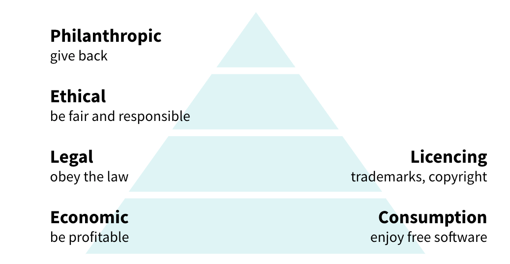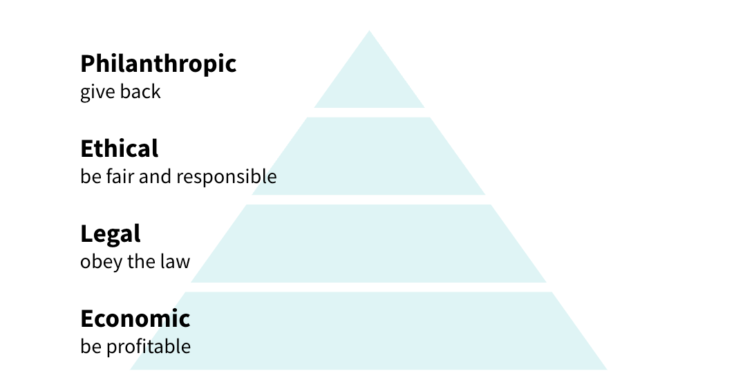 The various components of a business’ responsibility are neatly captured by Carroll’s Pyramid: